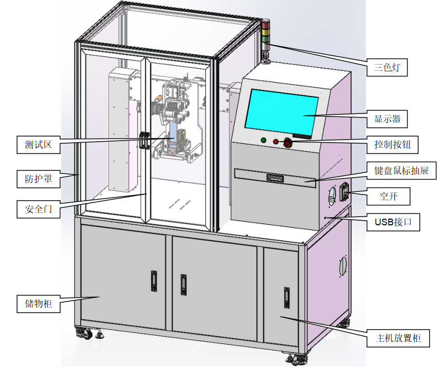 設備主要(yào)用於測試汽車安全帶卷收器卷收功能及鎖止角度;電機帶動安全帶卷收器按照設定(dìng)出卷速度、傾斜速度、傾斜角度、測試次數等參數進行測試