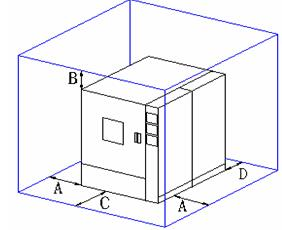 6.5占地及周邊相關尺寸 | A.設備(bèi)周圍維護空間,按A:≥1500px B:≥1500px C: ≥3000px D: ≥ 1500px;