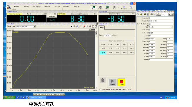 m) 曲線遍曆:試驗完成後,可對曲線進行再分析,用(yòng)鼠標可找到曲線上任一(yī)點所對(duì)應的試驗數據;