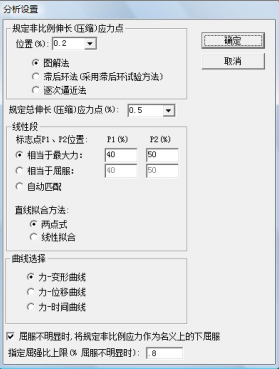 7、 采用人(rén)機交互方式(shì)分析(xī)計算測試材料的機械性能(néng)指標,試驗結束時自動(dòng)計算彈性模量(liàng)、屈服強度、非比例伸長應力等(試驗方(fāng)法不同,分(fèn)析的數據也會不同),在自動分(fèn)析的基礎上,還可以人工幹修正分析結果,提高分析的準確性;