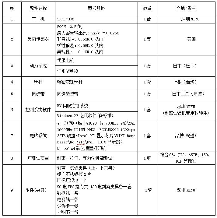 本機適合於500N及以下各種手機,平板電腦及其相關製品進行拉伸、剝離等常規力學性能測試和分析研究。適用於FPC、膠粘劑、膠粘帶、不幹膠、醫用貼劑、保護(hù)膜、離型紙、複合(hé)膜、人造革、編(biān)織袋、薄膜、紙張等相關產品的剝離、拉(lā)斷等性能測試;配備專(zhuān)用試驗控製軟件(jiàn)和夾持裝(zhuāng)置,根據(jù)GB、JIS、ASTM、DM、ISO等標準自動求出最大試驗力值(最小力值/平均值(zhí))、斷(duàn)裂力值,抗拉強度(dù)、伸長率、剝離強度(dù)、剝離力等參數,結果準確、可靠、重複性好。並能進行數據修約(GB8170),打印出Fm、Rm、Rp、ReH、ReL、Re、A、Z、E等(děng)力學性能指標和(hé)負荷一變形、應力(lì)一應變等曲線(xiàn)。是企業、監督機構產品檢測和科研院校教學研究的理想(xiǎng)設備。