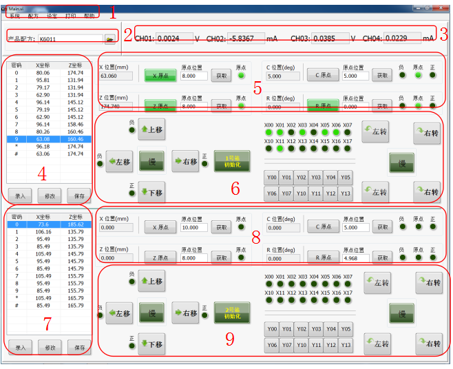 4、工位密碼坐標軸 顯示輸入密碼的坐標軸,不同試(shì)樣,坐標不一樣,更換試樣(yàng)後,需手動錄入(rù)