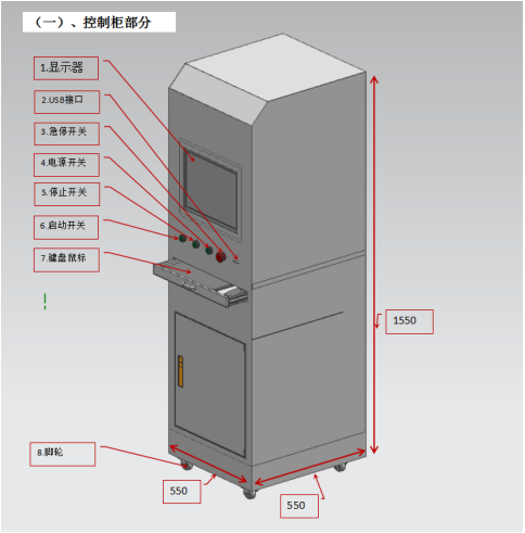 12 | 機台尺寸 | 工位尺寸(cùn)(W*D*H)=1060*960*2350,控製櫃(W*D*H)=550*550*1550 |