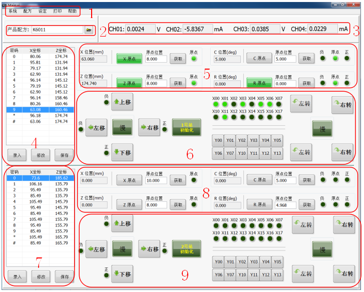 5、工位對應的軸的(de)位置及(jí)原點顯示