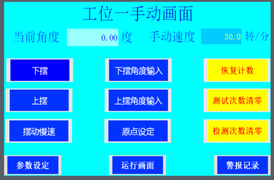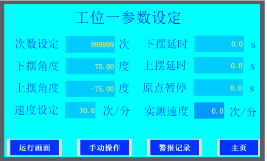 設定擺(bǎi)動(dòng)角度、擺動速度、擺動延(yán)時等測試參數