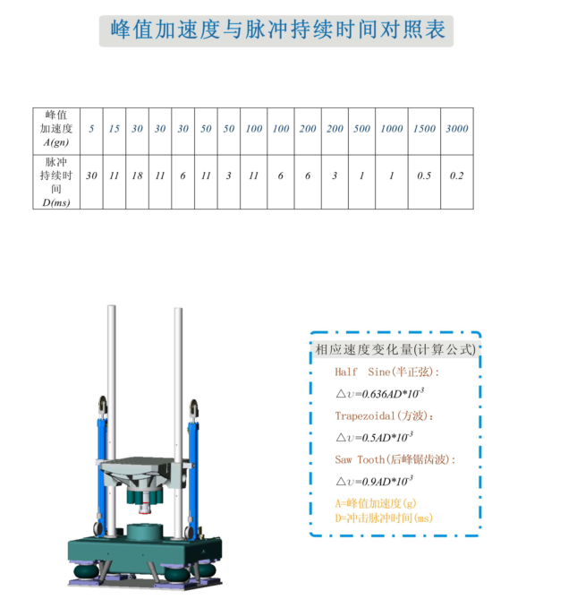 半正弦(xián)波發生器主要用工程橡膠製(zhì)造或羊毛氈。由多種不(bú)同的厚度相(xiàng)互串聯,組成多種剛度,實現不(bú)同的衝擊脈衝寬度。